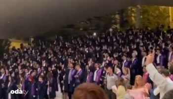 Hacettepe Üniversitesi Tıp Fakültesi öğrencileri, mezuniyet merasiminde daima bir ağızdan İzmir Marşı'nı söyledi.