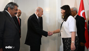 MHP önderi Devlet Bahçeli, DEM Parti heyetini kapıda karşıladı. Görüşme TBMM'de gerçekleşiyor. DEM Parti heyetinde Pervin Buldan, Mithat Sancar ve Faik Erol yer alıyor.
