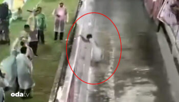 Endonezyalı futbolcunun gol sevinci makus bitti. Tribünlere koşan futbolcu 3 metre yükseklikten düştü.