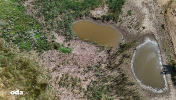 Kırklareli Karakoç köyündeki Sazlık Göleti, kuraklık ve çok sıcaklar nedeniyle neredeyse büsbütün kurudu. Göletteki balıklar ömür gayreti veriyor.