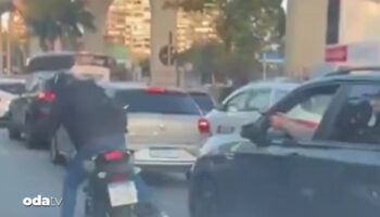 Brezilya'da trafikte motosikletli bir şoför tarafından gasp edilmeye çalışılan araç şoförü gaspçıyı silahla ateş ederek uzaklaştırdı.