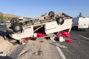 Şanlıurfa-Bozova karayolunun 15’inci kilometresinde, İsmail A. yönetimindeki tarım emekçilerini taşıyan minibüs, şoförünün denetiminden çıkarak devrildi.