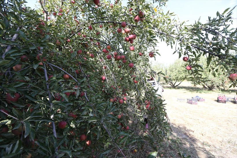 Sınırdan geçen Arpaçay Irmağı’nın suyuyla bahçelerini suladıklarını kaydeden üretici Sinan Karadağ da bahçelerde “Granny Smith”, “Golden delicious”, “Starking” ile yaz elması yetiştirdiklerini belirtti.