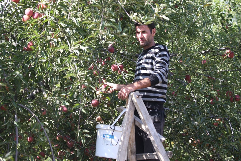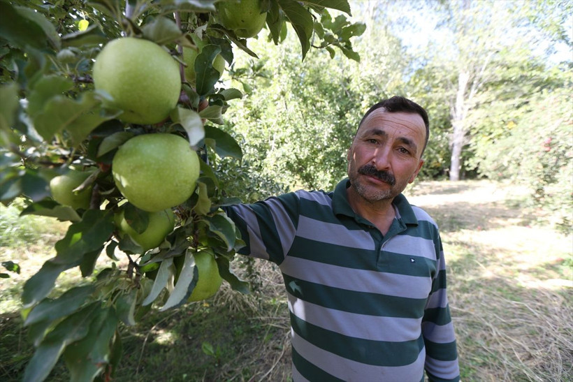 Türkiye-Ermenistan sonunun sıfır noktasında, hududu bölen Arpaçay Irmağı’nın kenarındaki bahçesinde 3 çeşit elma yetiştiren Karadağ, randımandan epeyce mutlu.