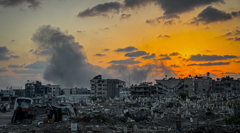Gazze Şeridi’nin doğusundaki Tuffah Mahallesi’ne düzenlediği akınlar sonucu bölgeden ağır duman yükseldi.
