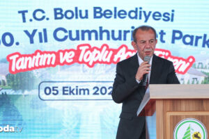 “Belediyemizin 148’inci yaşında bizi onurlandırdığınız için teşekkür ederiz. Biz nitekim çalışan belediyelerden bir tanesiyiz. Bolu’da, misyona geldiğimizde 600 kilometre civarında yol uzunluğu vardı, artık bin kilometreyi geçti bu, imar yolu uzunluklarını söylüyorum. Asfalt serimi konusunda Türkiye’nin önde gelen belediyelerinden bir tanesiyiz. Biz toplam 6 buçuk yıl boyunca buradan Edirne’ye kadar yaklaşık 400 kilometrenin üstünde yağmur suyu ve kanalizasyon çizgisi çeken bir belediyeyiz. Yalnızca 2023 yılında 143 kilometre asfalt serimi gerçekleştiren bir belediyeyiz.”