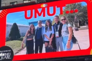Öte yandan bu ziyaretler esnasında Türk Evi’ne 10 dakika yürüme aralığında bulunan Times Meydanı’ndaki dev ekrana gençler tarafından tutuklu İBB Başkanı ve CHP’nin Cumhurbaşkanı Adayı Ekrem İmamoğlu ve CHP Genel Başkanı Özgür Özel’in olduğu bir fotoğraf yansıtıldı. İmamoğlu ve Özel’in aileleriyle olduğu ortak fotoğrafın üstünde “Umut” yazıldığı görüldü. O anlar…