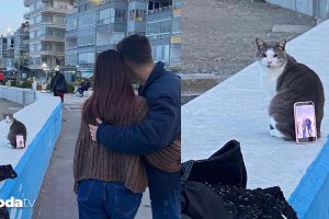 O anlar etrafta bulunan vatandaşların dikkatini çekerken, kedinin yerinden kıpırdamadan durması ise gülümsetti. Çift, kedinin sakinliği sayesinde istedikleri fotoğrafı çekmeyi başarırken ortaya renkli imgeler çıktı.
