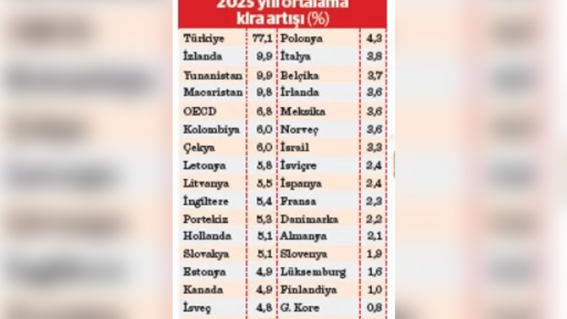 “2025 yılında kiralar OECD ortalamasında yüzde 6,8, Türkiye’de yüzde 77,1 arttı. 2015-2025 devrinde OECD ortalamasında yüzde 48,9 olan kira artışı, Türkiye’de yüzde 1.457,7’ye ulaştı.