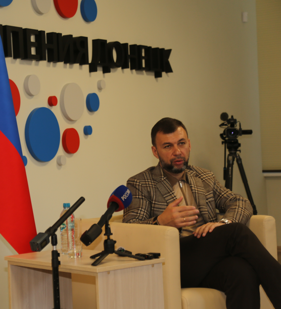 Moskova tarafından Donetsk Halk Cumhuriyeti Devlet Başkanı olarak atanan Denis Vladimiroviç Puşilin, milletlerarası basın mensuplarının karşısına çıkarak çok merak edilen soruları yanıtladı. İki ülkenin hududunu oluşturan kenti direktörün ağır sorumluluğunu hatırlatan 44 yaşındaki Vladimiroviç Puşilin, tüm aksiliklere karşın halkının itidalli duruşu ve devlet siyasetine duyduğu itimada vurgu yapıyor.
