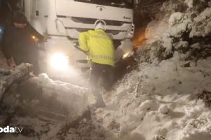 Yol kapandı polis küreği eline aldı