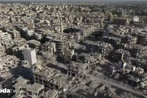 Bir devir okul, hastane, cami ve iş yeri olarak kullanılan birçok bina ya büsbütün enkaza dönüşmüş durumda ya da yalnızca iskeletleri ayakta kalmış vaziyette. Suriye’nin en büyük mülteci kampı olan Yermuk’ta bugün sadece çok az sayıda aile, harabeye dönmüş binaların ortasında ömür gayreti veriyor.